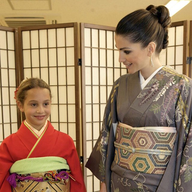 A throwback from a working trip to Japan with His Majesty King Abdullah II in 2006; visiting the Sodo Kimono School with Iman