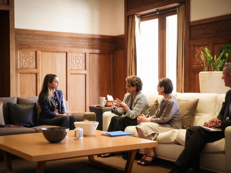 Her Majesty Queen Rania Al Abdullah met today with UNICEF’s Deputy Executive Director, Ms. Geeta...