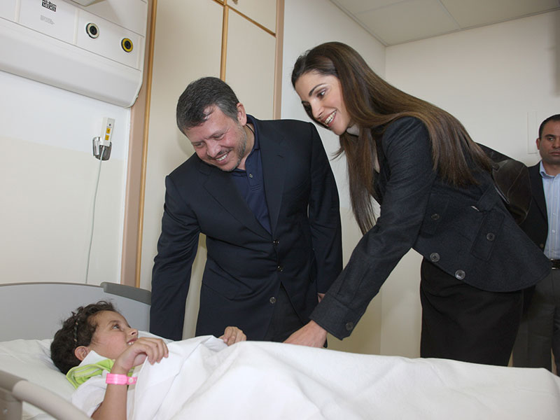 AMMAN (JT) - Their Majesties King Abdullah and Queen Rania on Sunday visited four hospitals in Amman and Irbid to check on the condition of 16 people injured in a recent road accident.
