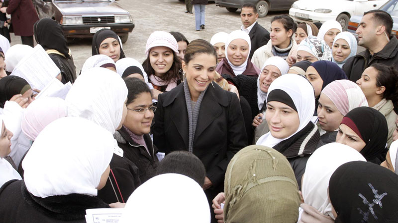 (Office of Her Majesty, Press Department - Amman) Her Majesty Queen Rania Al Abdullah, on Monday, paid a surprise visit to a girls’ school in the capital, where she met Tawjihi students.