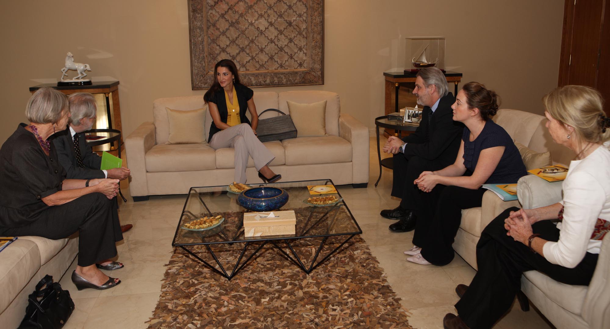 (Office of Her Majesty, Press Department – Amman) Her Majesty Queen Rania Al Abdullah, UNICEF’s Eminent Advocate for Children, welcomed a United Kingdom’s National Committee for UNICEF delegation to Jordan, Thursday, to strategize on the Queen’s role and coordinate efforts in spreading UNICEF’s important mandate. On the heels of the Queen’s meeting with UNICEF’s Executive Director Ann Veneman in New York last month, Queen Rania brought the team together to discuss an upcoming sports in development initiative that the Queen said she was keen to lend her voice and support to. The team briefed the Queen on their involvement with the London 2012 Olympics “International Inspiration” program, which will use the power of sport to transform the lives of millions of children and young people in schools and communities in countries across the globe. The aim, according to Thursday’s discussion, will be to help more children and young people, especially those from disadvantaged groups, participate in sport to attain life skills and enjoy an improved quality of life in line with the Millennium Development Goals. The UNICEF National Committee for the UK team includes Executive Director David Bull, President Lord Puttnam of Queensgate, Lady Pasty Puttnam, and Chloe Edwards. They are in Jordan on a 2 day mission to visit UNICEF related programs and activities and explore ways of supporting these initiatives.