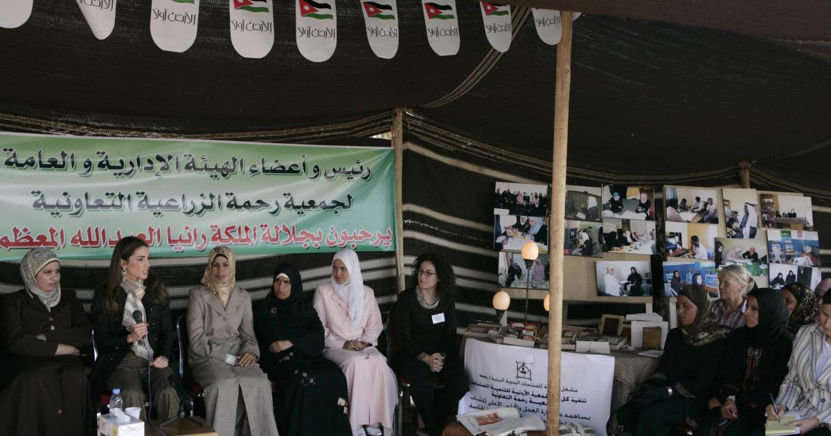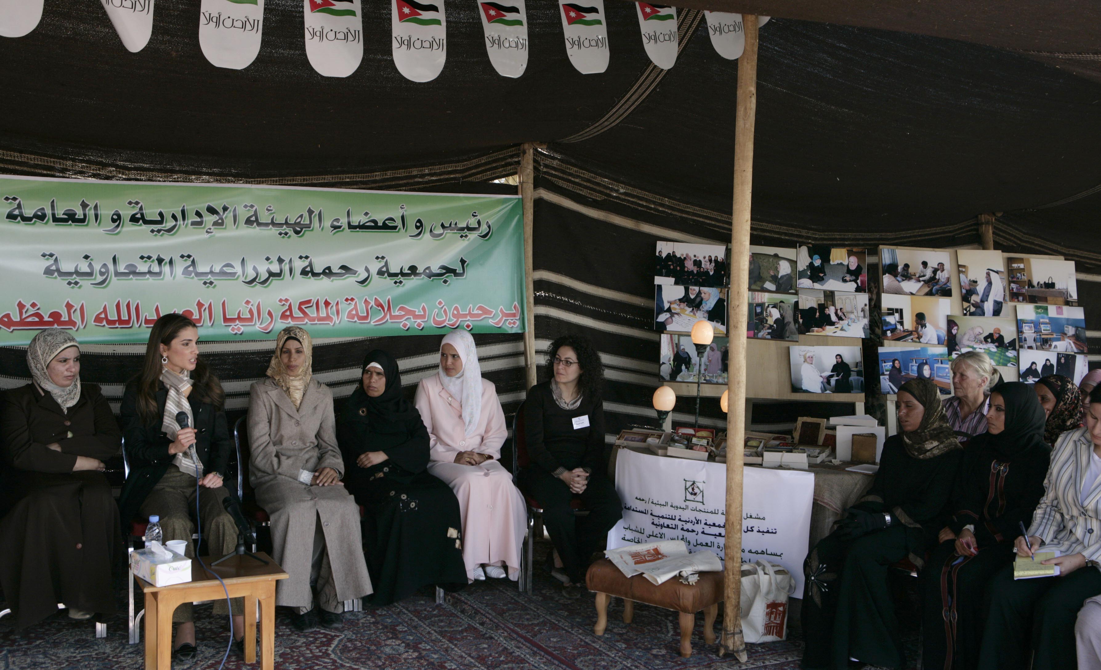 (Jordan Times - Wadi Araba) Her Majesty Queen Rania visited two Wadi Araba villages where she checked on citizens’ conditions and projects implemented in the area with the support of the Jordan River Foundation (JRF).