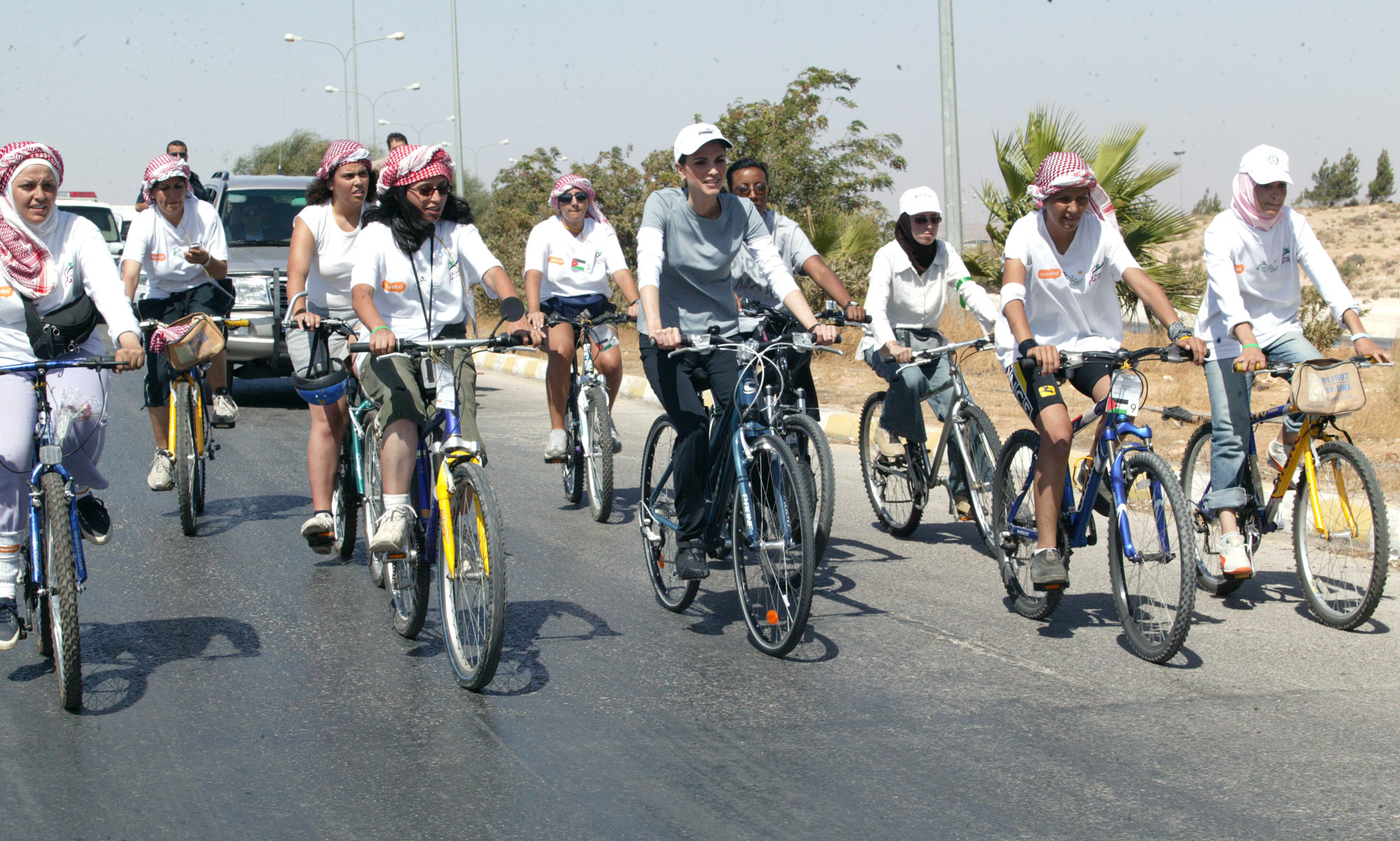 (Office of Her Majesty Queen Rania Al-Abdullah- Press Department, Jaber Border/Village) Her Majesty Queen Rania Al-Abdullah, on Wednesday, was on hand to receive a group of women cyclists from 20 countries who are cycling for peace across the Middle East.