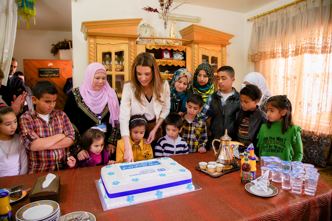 (Office of Her Majesty Queen Rania Al Abdullah – Press Department – Amman) Her Majesty Queen Rania Al Abdullah visited today the SOS Village in Irbid to be with the village mothers and children on the occasion of Mother’s Day which falls on Friday of this week.