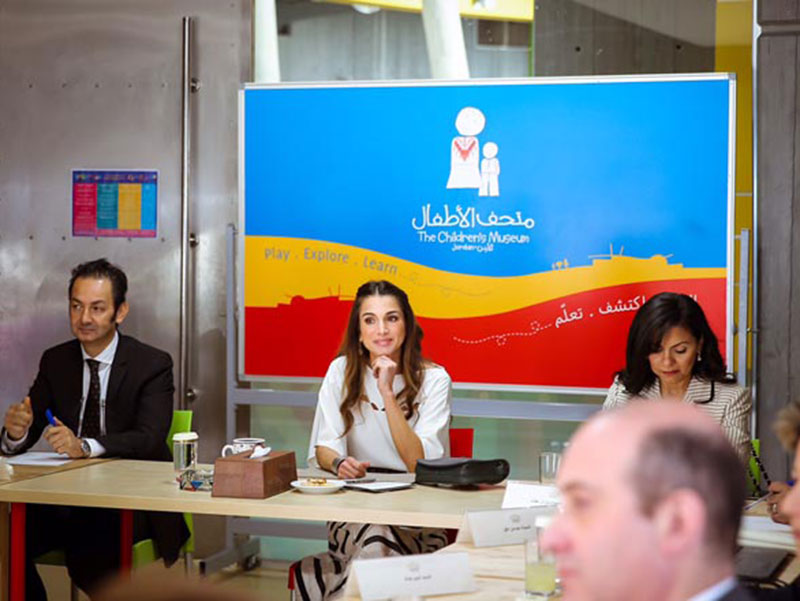 The Queen further encouraged the Museum staff to expand their outreach to include more children from across the Kingdom, particularly through the mobile museum. Currently the Museum receives 250,384 visitors annually, in addition to 45,628 children who experienced the mobile museum in different parts of Jordan.