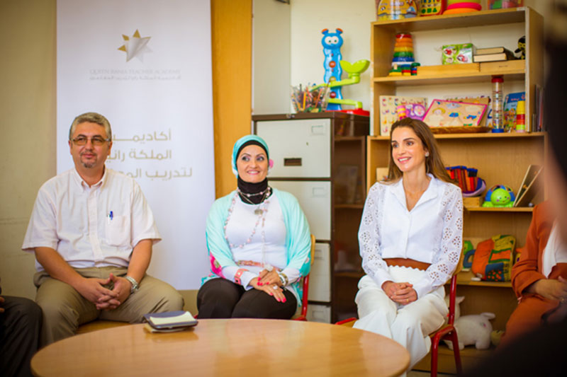 During the visit, Queen Rania met with Mr. Haif Bannayan, CEO of QRTA, and Ms. Hiyam Al Halahleh, School Principal, along with several teachers and counselors to discuss the importance of such programs in developing teachers’ skills and empowering them. These courses also help educators in using creative teaching tools that engage and excite students. Her Majesty also highlighted the positive effect these courses have had and on the overall teaching and learning experiences.