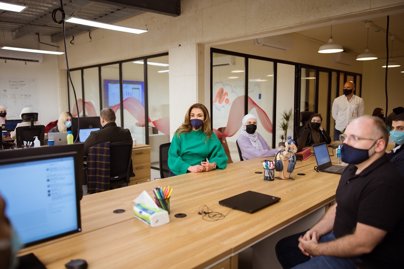 (Office of Her Majesty – Press Department – Amman) - Her Majesty Queen Rania Al Abdullah visited the offices of Maqsam in Amman on Monday, where she met with the team behind the local cloud telephony company.