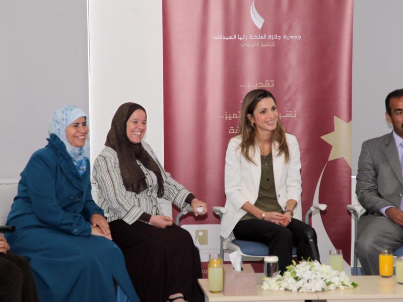 – Her Majesty Queen Rania Al Abdullah met with a group of thirty past winners of the Queen Rania...