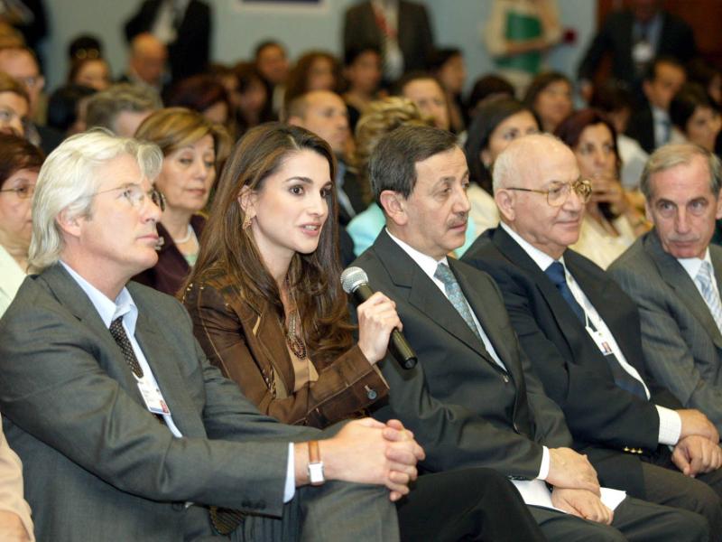 Accompanying US First Lady, Laura Bush, Her Majesty Queen Rania, on Sunday, joined students and...