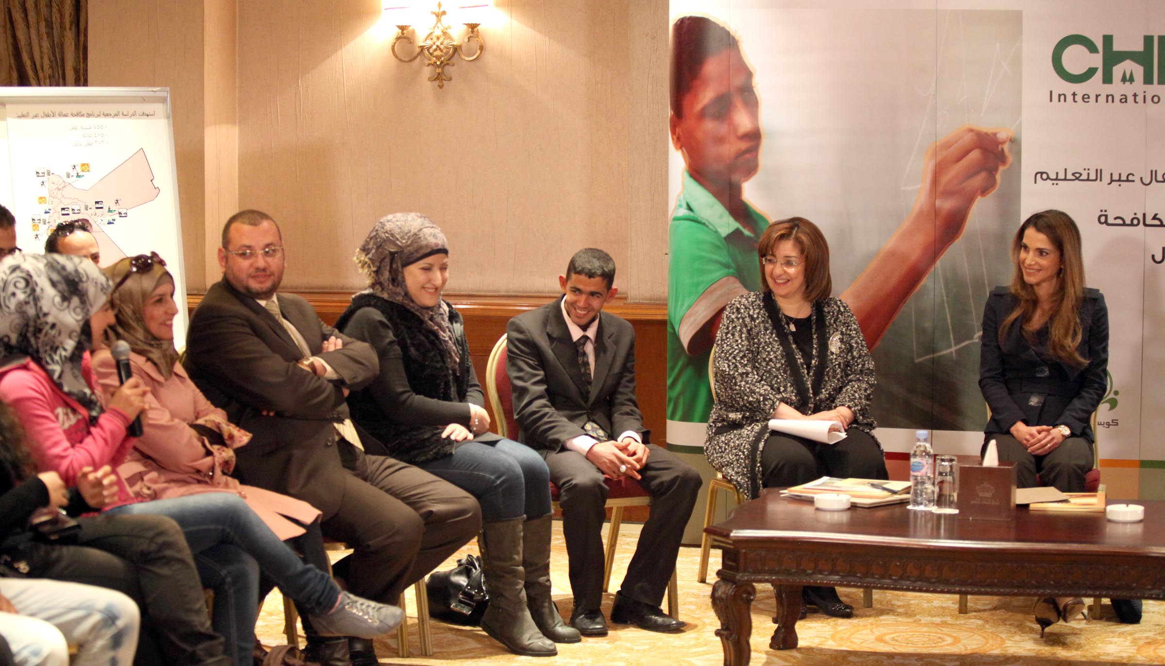 (Office of Her Majesty, Press Department- Amman) – Her Majesty Queen Rania Al Abdullah attended today a discussion around the launch of the National Frame for Child Labor in Jordan. The discussion, which took place at the King Hussein Club in Amman, included presentations by Mrs. Reem Abu Hassan, Secretary General of the National Council for Family Affairs (NCFA) on child labor in Jordan and Mr. Waleed Tarawneh, Country Director of the Cooperative Housing Foundation (CHF) on the Child Labor Program, its goals, results and future plans.