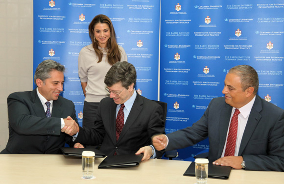 (Office of Her Majesty, Press Department- Amman) – Under the patronage of Her Majesty Queen Rania Al Abdullah, the Columbia University Middle East Research Center (CUMERC) in conjunction with the Earth Institute at Columbia University and the Jordanian Ministry of Planning and International Cooperation (MoPIC), held a signing ceremony for the Institute for Sustainable Development Practice on Monday December 6, 2010. As the first of its kind in the region, the Institute aims to tackle the challenges of sustainable development in Jordan, from extreme poverty, to climate change, to unemployment through capacity building, strategic research and policy support. A Memorandum of Understanding was signed between the Columbia University Middle East Research Center, the Earth Institute, and the Ministry of Planning and International Cooperation.