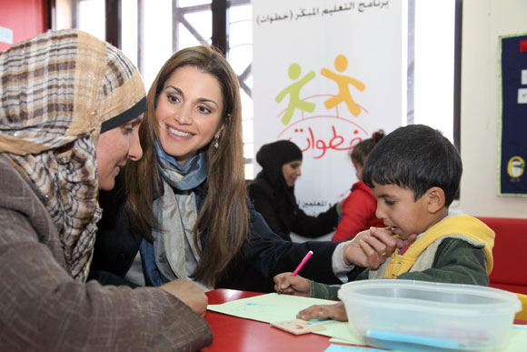 (Office of Her Majesty, Press Department- Amman) Her Majesty Queen Rania Al Abdullah visited the Parent Child Center at Abu Bakr Al Seddiek Park in Khraibet El Souq. The center operates as part of the “Khatawat” (Steps) program by “Save the Children”. During the visit Her Majesty was briefed about the different services that the center offers to children of the local community and was updated on Save the Children’s “Khatawat” Program.