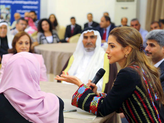 At Al Karak Children’s Club, which is one of the 28 CBOs taking part in JRFs Comprehensive Development Initiative, Her Majesty met with the club’s board of directors and received a brief on its mandate and the services it offers to the children of the local community. Her Majesty toured the Club’s facilities including the computer lab and stopped by an ongoing “innovative thinking” session.