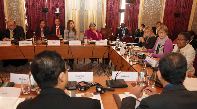 (Office of Her Majesty, Press Department- London) – Her Majesty Queen Rania Al Abdullah, alongside other members of the United Nations High Level Panel (HLP) on the post-2015 development agenda, attended in London on Wednesday the start of the second leg of HLP meetings to discuss the international development agenda beyond 2015.