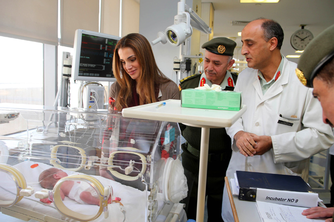 Upon Her arrival, the Queen was received by Major General Dr. Abdul Azeez Zyadat, Director General of Royal Medical Services (RMS), Brigadier Dr. Tayseer Shbeilat, Director General of Al Hussein Medical City, and Brigadier General Dr. Mu’in Habashneh, Director General of the Queen Rania Al Abdullah Hospital for Children.