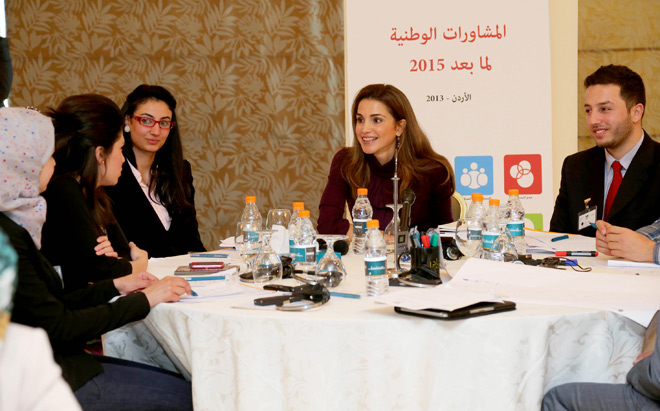“I am proud that we in Jordan focus on constructive dialogue; how to build for the future, how to improve our situation and how to upgrade the educational process,” said Her Majesty, who is a member of the U.N. High Level Panel (HLP) to advise on the shape of global development for after 2015, the target date for the expiry of the Millennium Development Goals (MDGs).