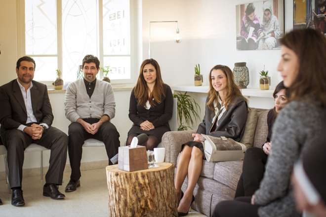 Queen Rania met with Mr. Amir Shihadeh, founder of Y.A.R.A, and a group of youth to discuss the importance of coexistence and interfaith harmony and observed examples of Jordanian youth working together to improve and enhance the mindset of religious coexistence, while promoting national unity and citizenship in Jordan.