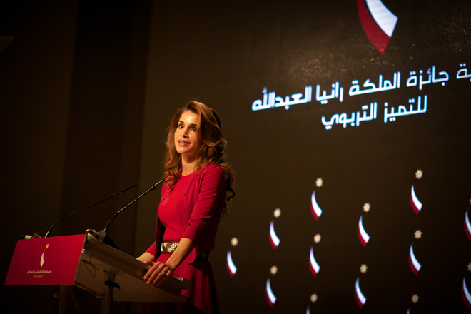 As chairperson of the Board of Trustees, Queen Rania congratulated winning teachers and principals saying: "Thank you for teaching our kids, for taking care of our schools, and for your extraordinary spirit of giving. This award is just a token of our appreciation."