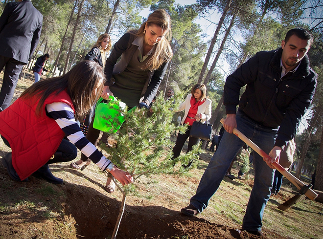 (Office of Her Majesty- Press Department- Amman) Her Majesty Queen Rania Al Abdullah joined the University of Jordan to celebrate Arbor Day and support the university's efforts to replace the trees that were damaged during the recent snowstorm.