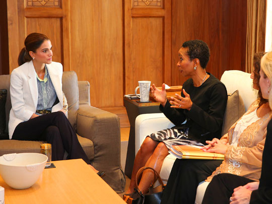(Office of Her Majesty – Press Department – Amman) - Her Majesty Queen Rania Al Abdullah met today with President and CEO of CARE USA Dr. Helene Gayle, Regional Country Director for CARE in the Middle East Gareth Richards, Country Director of CARE Jordan Salam Kanaan, Regional Director of Development Fairuz Taqi-Eddin and Director for Humanitarian Programs Holly Solberg.