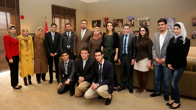 (Office of Her Majesty, Press Department-Amman) In recognition of some talented and ambitious students in Jordan, Her Majesty Queen Rania Al Abdullah met today with winners and participants of the Intel Science Competition-Arab World 2012, which took place in December in Dubai and drew 130 students from 11 Arab countries.