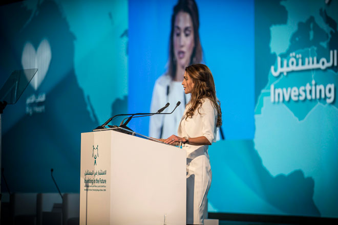 Queen Rania also thanked the United Arab Emirates, the Emirate of Sharjah, His Highness Sheikh Dr. Sultan bin Muhammad Al Qasimi, Her Highness Sheikha Jawaher Al Qasimi and the office of the UN High Commissioner for Refugees for hosting this conference.