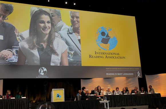 (Office of Her Majesty- Press Department- Chicago) Her Majesty Queen Rania Al Abdullah opened, today, the International Reading Association’s (IRA) 55th Annual Convention by championing global literacy, both as a means to lift the lives of impoverished communities, and as a way to overcome intolerance and mistrust between countries.