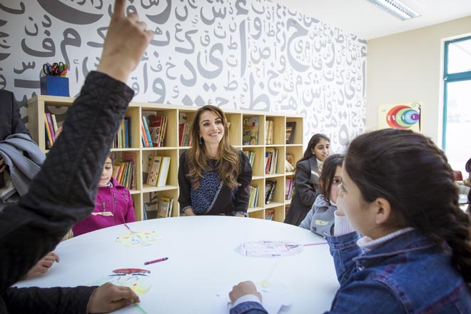 The Queen also visited the Computer Lab where she attended part of an Edraak session titled “Child’s Psychological Health.”