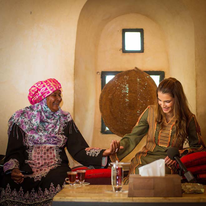 Her Majesty concluded her visit to Tabaqat Fahel with a meeting with several women from the area at the Pella rest house. In the meeting, several beneficiaries shared with Queen Rania the impact their projects have had on their socio-economic and living conditions as well as expressing their gratitude to the opportunities they have been presented.