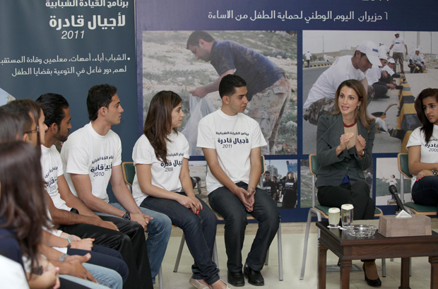 The Youth Leadership Program “Towards an Empowered Generation” is one of Queen Rania for Family and Child Center’s programs which started in 2009 and is held on an annual basis. Each year 25 youth from different public and private universities participate in five days of training that focuses on an array of topics such as team building and setting goals, self awareness, team work, communication Skills, problem solving, motivation and decision making, self development, time management, stress management, leadership qualities and citizenship.
