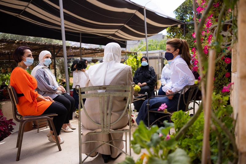 (Office of Her Majesty – Press Department – Jerash) - Her Majesty Queen Rania Al Abdullah visited Beit Khairat Souf in Jerash on Tuesday, and met with representatives and beneficiaries of Alnoor Almouben Association, a women-led organization that runs the site.
