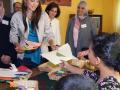 After her speech at the fourth annual CHI Consultation Conference, Queen Rania tours an exhibition hall and chats with children about their paintings that highlight the importance of the Helpline. Amman, Jordan / November 17, 2008 في المؤتمر السنوي الرابع …