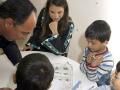 looking on as a teacher of the Arafeh Primary School for Boys, who is one of the recipients of the Queen Rania Award for Distinguished Teacher 2006, tutors his students. Tafileh, Jordan / March 12, 2007 تتابع شرح أستاذ في مدرسة عرفة الاساسية للبنين وهو …