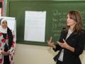 Her Majesty Queen Rania In one of the classes, observing new techniques for teaching English writing, at Al Shmeinsani Al Gharbi Schoolز Amman, Jordan/ October 25, 2010 جلالة الملكة رانيا خلال جلسة لتبادل المعلومات بين المعلمات المستفيدات من تدريب الكتابة …