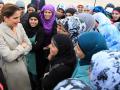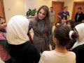 Queen Rania chats with girls from Al Mastaba Secondary School for Girls, in Jerash, where she advised that the School be included in the Queen’s Madrasati initiative. Jerash, Jordan/ February 28, 2011 الملكة رانيا تتحدث مع مجموعة من الطالبات من مدرسة …