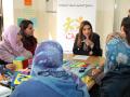 Queen Rania joins a group of mothers participating in a workshop on how to utilize and recycle materials available in their households into interactive learning tools for their children. Khraibet El Souq, Jordan / January 9, 2011 الملكة رانيا تحضر جانبا …