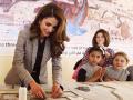 جلالة الملكة رانيا العبدالله تشارك زوار متحف الحكاية التراثي(لاستوريا) في وضع قطعة من الحجارة على أكبر لوحة فسيفساء في العالم تبين "الطريق الملوكي"، وذلك خلال زيارتها الى متحف الحكاية التراثي القريب من جبل نيبو بمحافظة مادبا.مادبا، الأردن/ 7 نيسان 2014 …