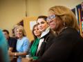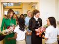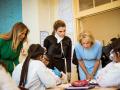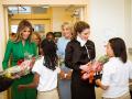 A billionaire, a queen and an American first lady walked into a public charter school on Wednesday, collecting bouquets, examining owl pellets and hugging students amid the rapid-fire clicking of …