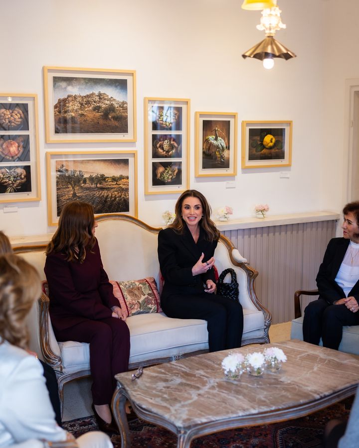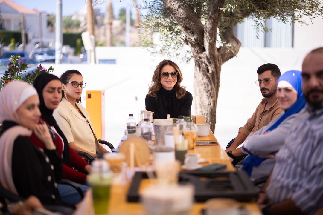 الملكة رانيا خلال لقاء مع سيدات من جمعية نادي صاحبات الأعمال والمهن وزيارة محمصة وأكاديمية بُني للقهوة