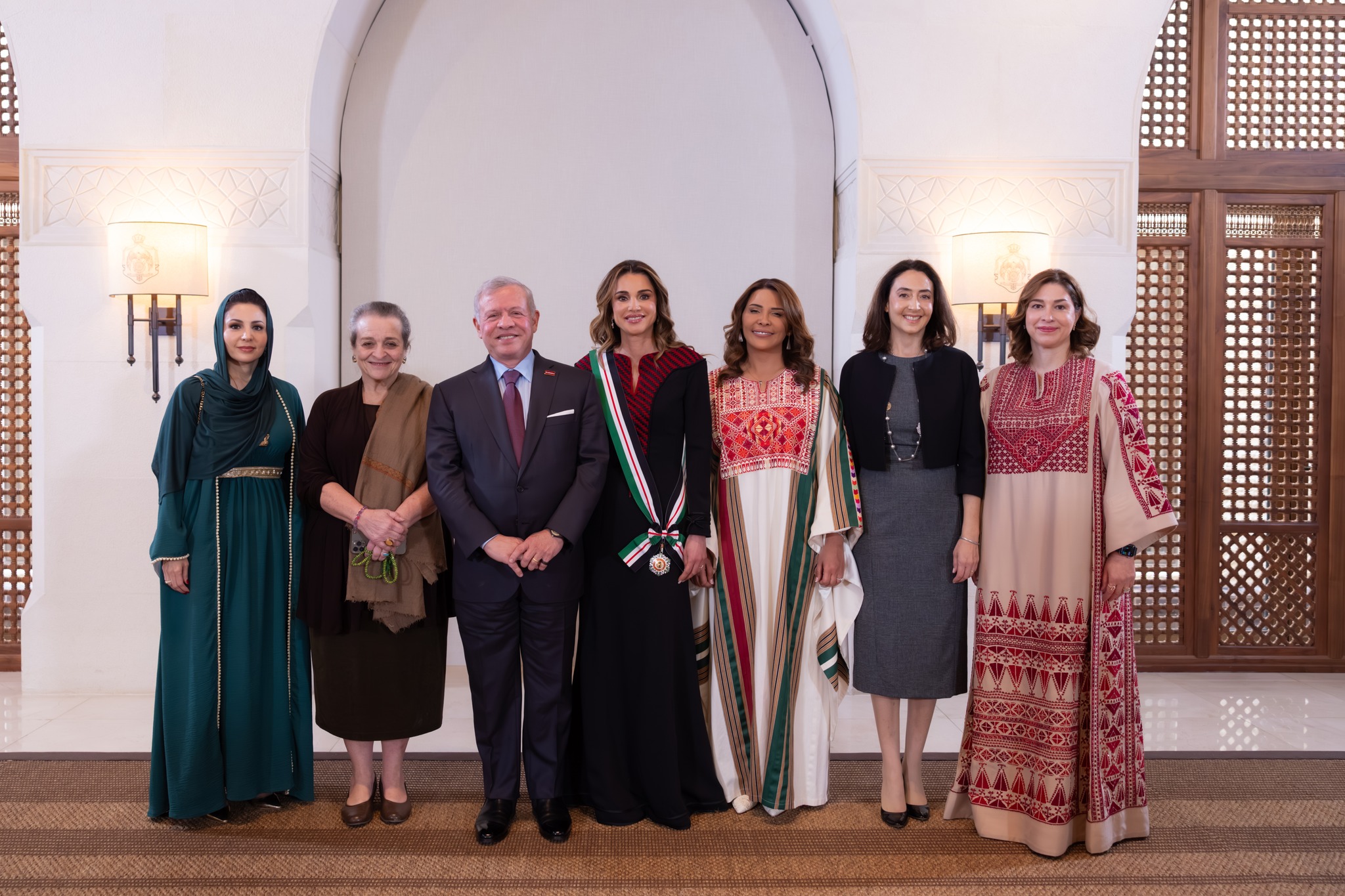 Their Majesties King Abdullah II and Queen Rania with a group of women on occasion of International Women’s Day, where His Majesty bestowed Her Majesty with the Order of the Renaissance