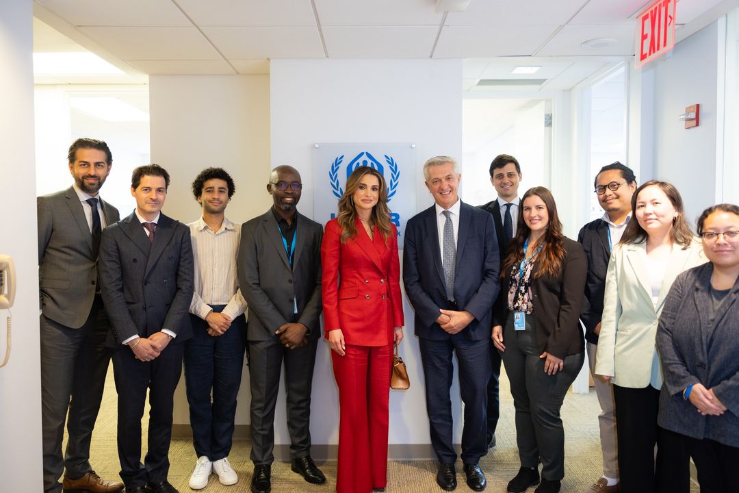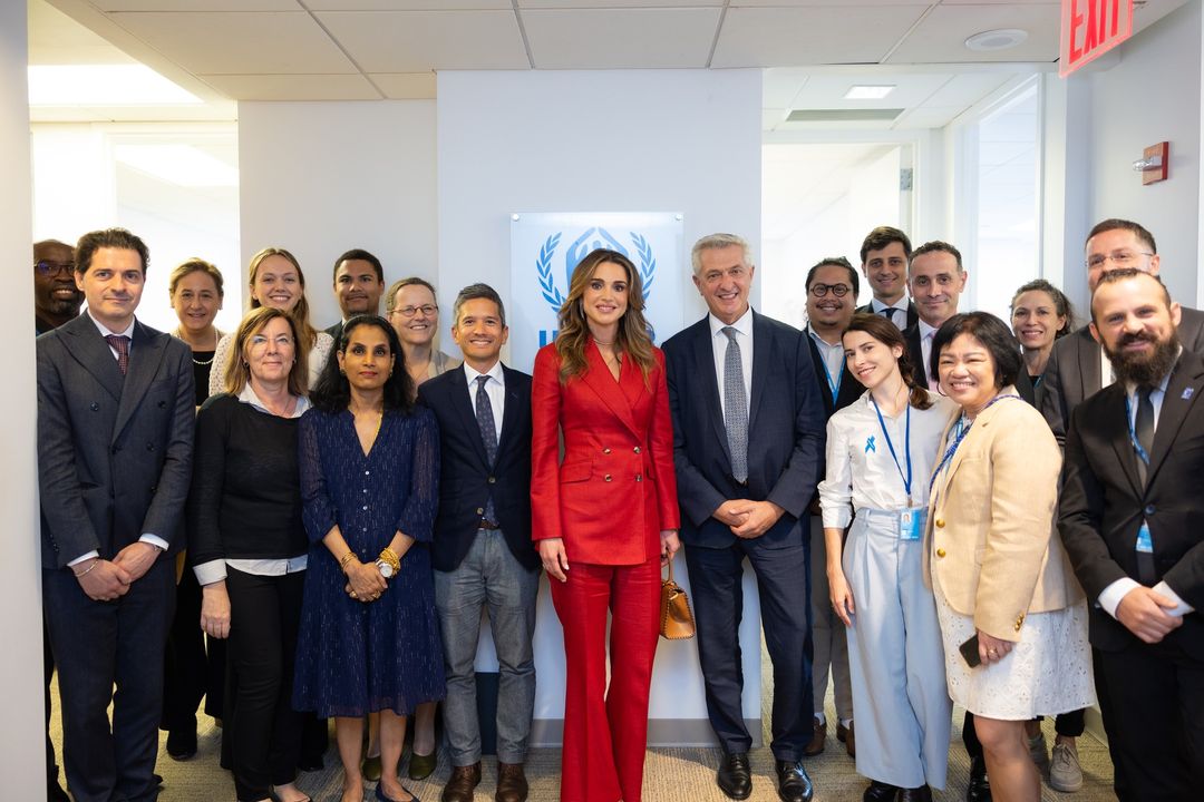 الملكة رانيا خلال اجتماع مع المفوض السامي للأمم المتحدة لشؤون اللاجئين فيليبو غراندي