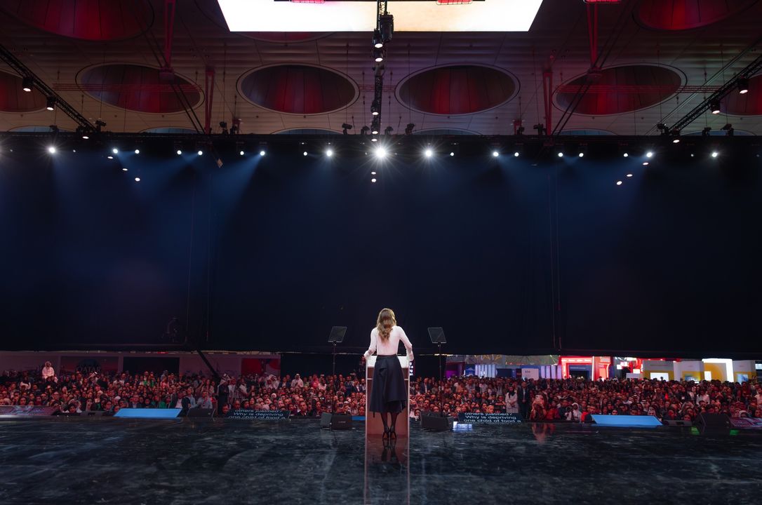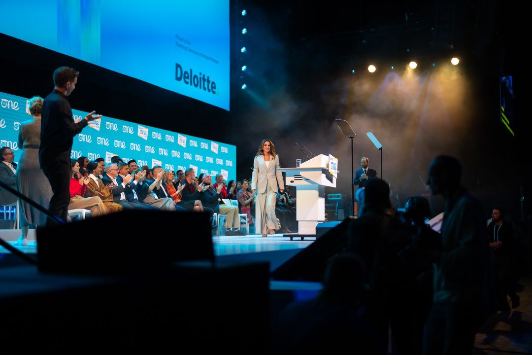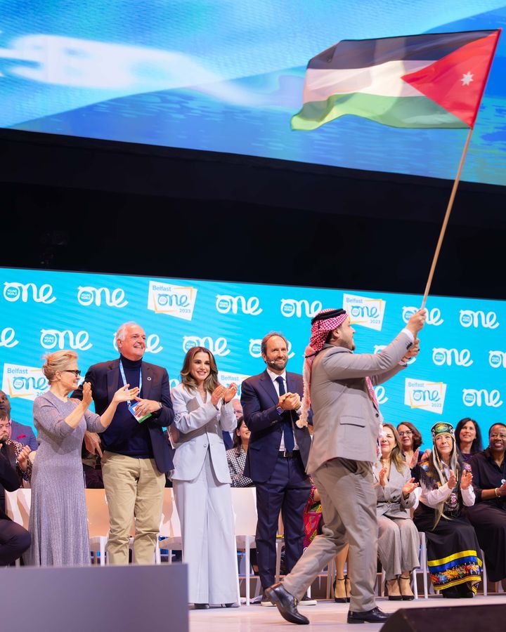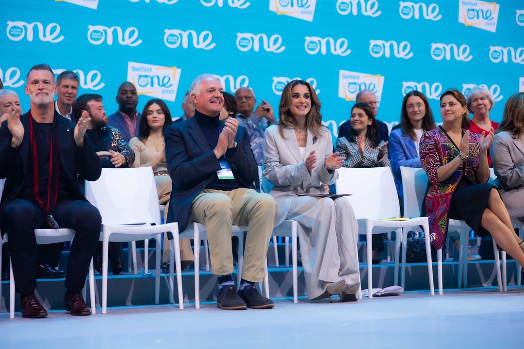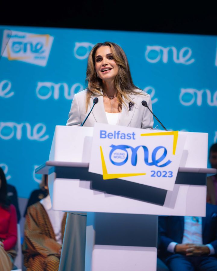 الملكة رانيا خلال مشاركتها في قمة "عالم شاب واحد" لعام 2023
