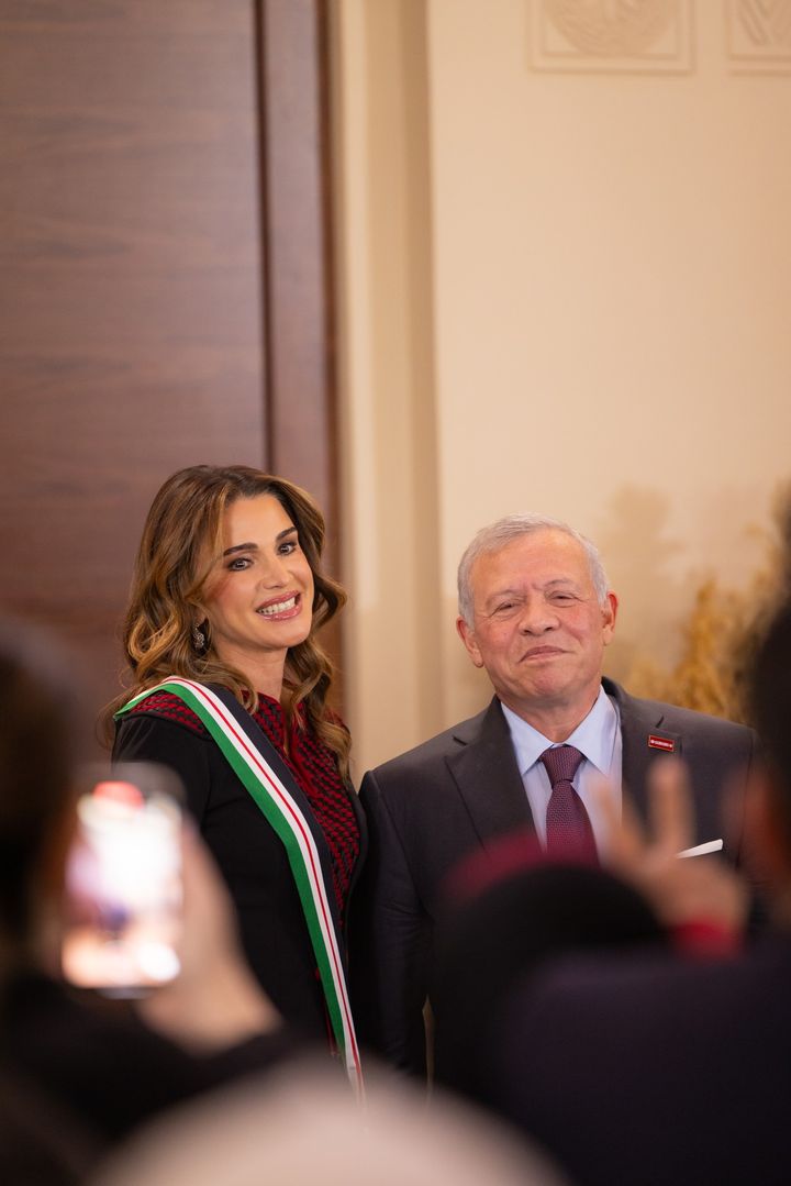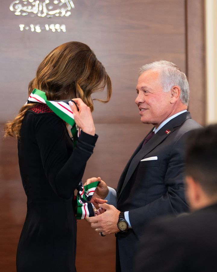 جلالة الملك عبدالله الثاني وجلالة الملكة رانيا يستقبلان سيدات أردنيات بمناسبة اليوم العالمي للمرأة، وجلالته يقلد الملكة وسام النهضة المرصع