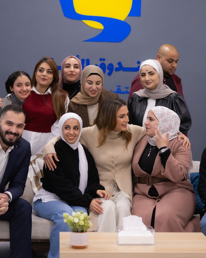 الملكة رانيا مع مجموعة من شباب صندوق الأمان لمستقبل الأيتام