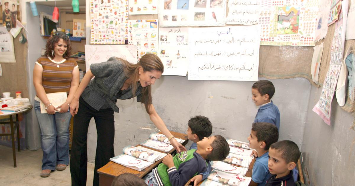 During a tour at the Salma bint Abi Hafz and Queen Zein Al Sharaf schools.
