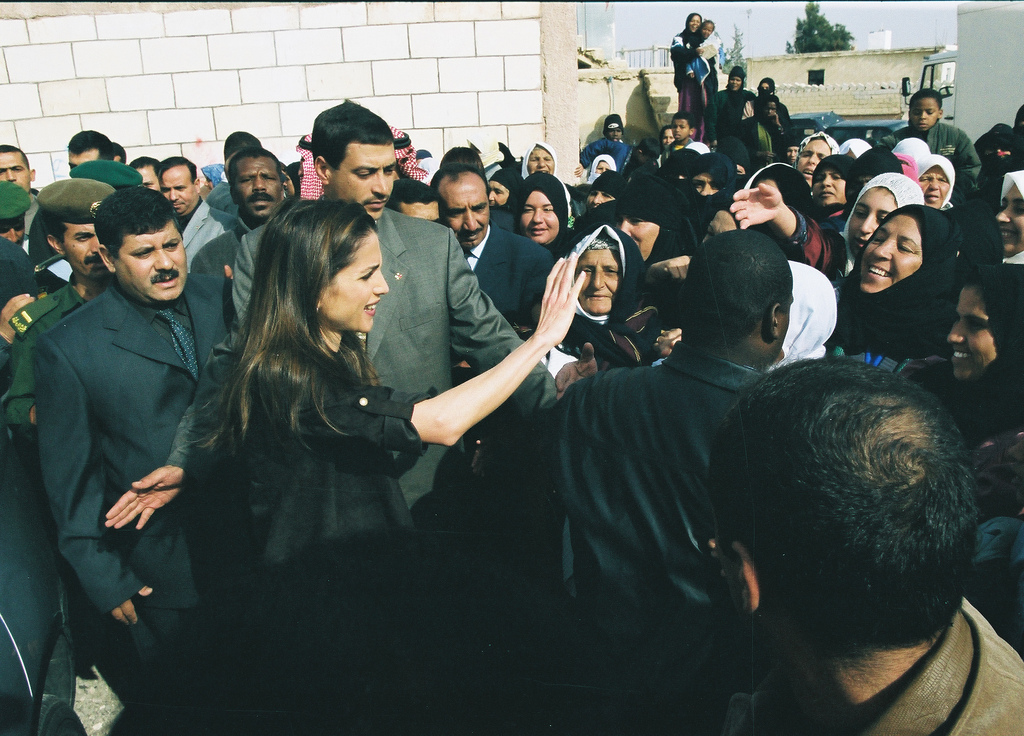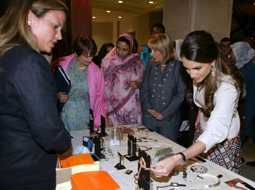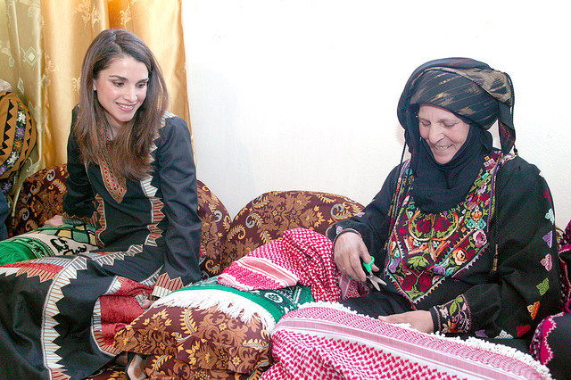 خلال زيارة الى جمعية سيدات صخرة التعاونية حيث اطلعت جلالتها على المشاريع الصغيرة التي تقوم بها النساء في قرية صخرة في محافظة عجلون