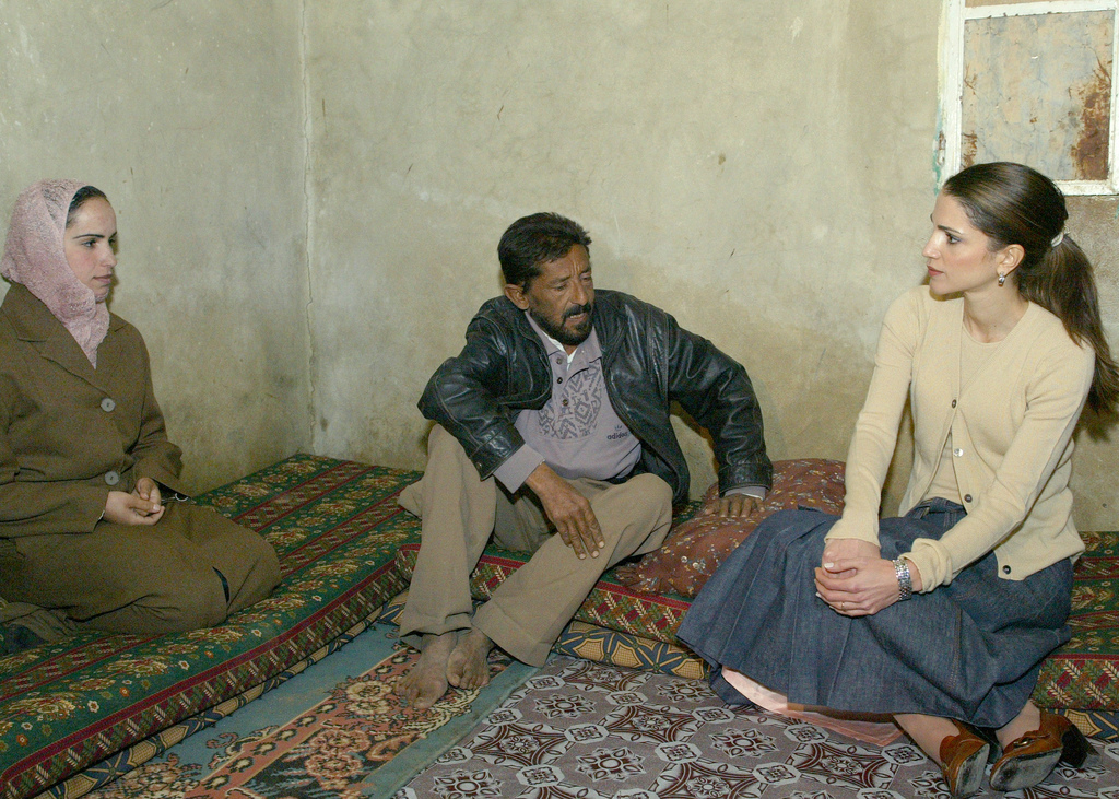 Visits a needy family in Mwaqqar where she called for securing the family with a temporary shelter until a house is built for the family