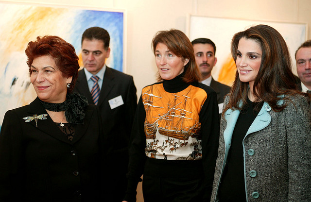 خلال افتتاح معرض الفن الأردني الحديث بحضور عقيلة وزير الدولة الفرنسي للشؤون المالية والاقتصادية والتجارية السيد نيكولاس ساركوزي والأميرة وجدان رئيس الجمعية الملكية للفنون الجميلة