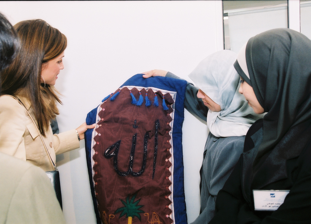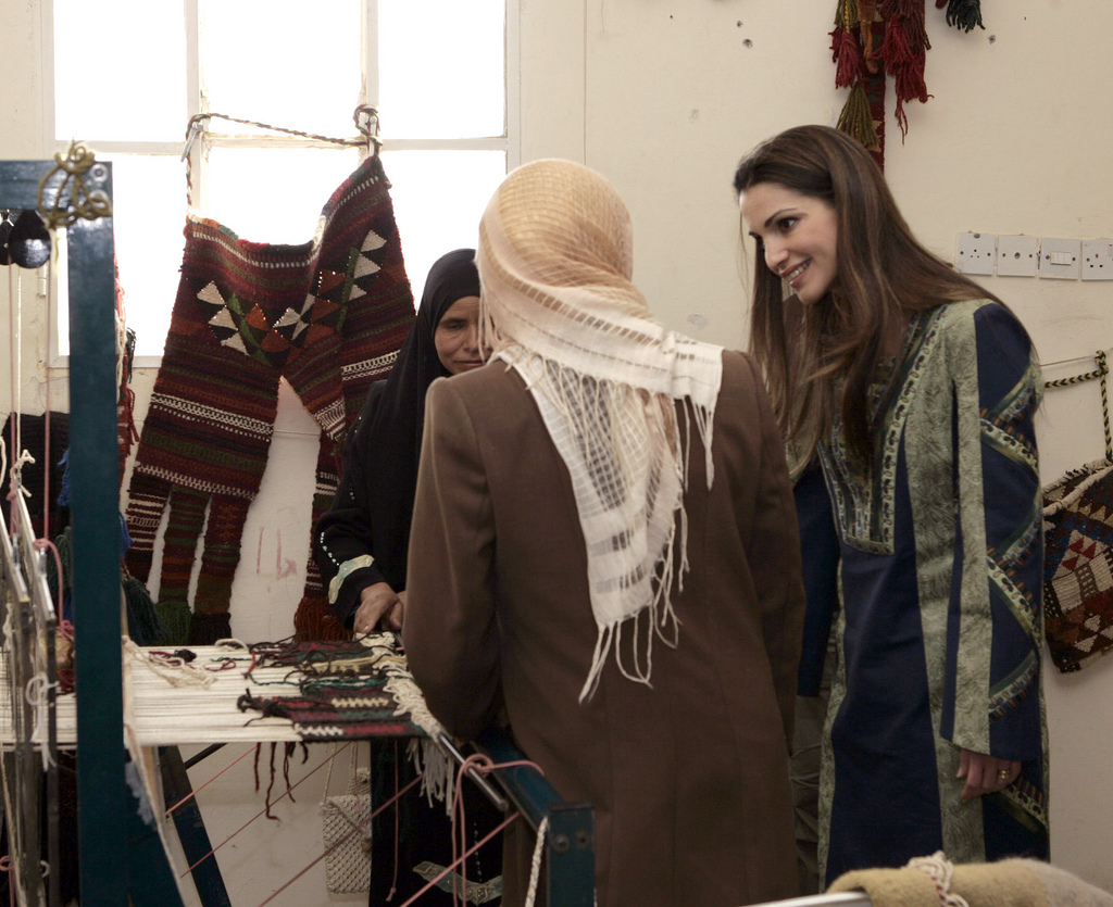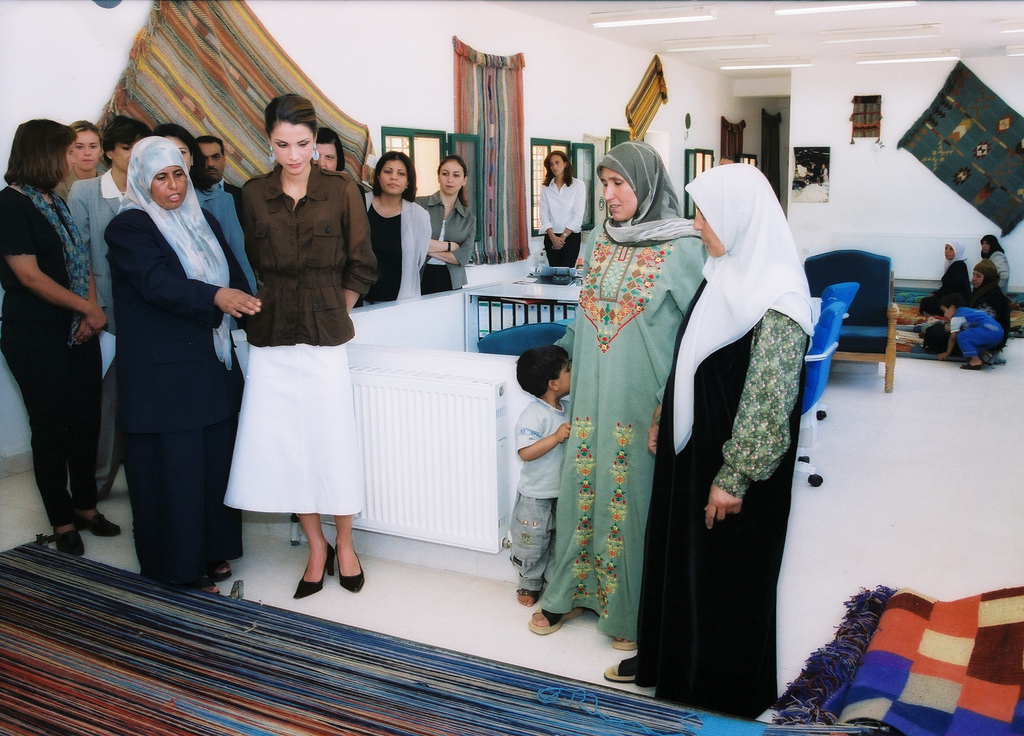 Tours the Barada Ladies Society where 67 women make rugs, embroidery and olive oil soap. The tour was a part of Her Majesty’s visit to Disseh, Wadi Rum