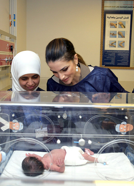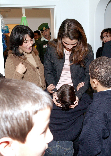 الملكة رانيا خلال زيارة الى دار الأمان حيث تجولت في أقسام مبنى الدار الجديد واطلعت على مختبر الحاسوب والمكتبة وتفقدت وضع الأطفال وقدمت لهم وللعاملين في الدار الهدايا بمناسبة عيد الفطر